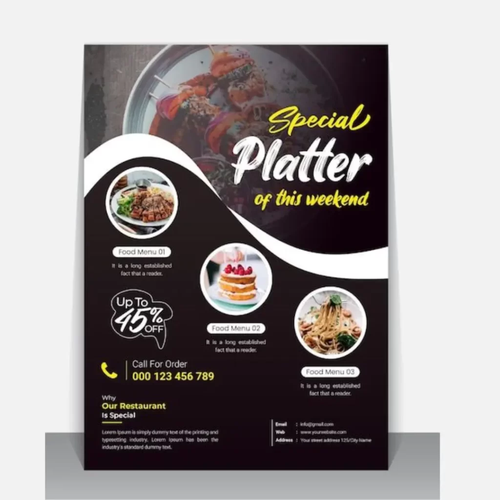 Digital channels dominate conversations, yet flyers continue to outperform in local reach, brand tangibility, and recall. A well-designed flyer is tangible proof of a brand’s quality. It is held, shared, displayed, and remembered. For FMCG brands and food businesses, flyers reinforce packaging visibility at retail touchpoints and events.