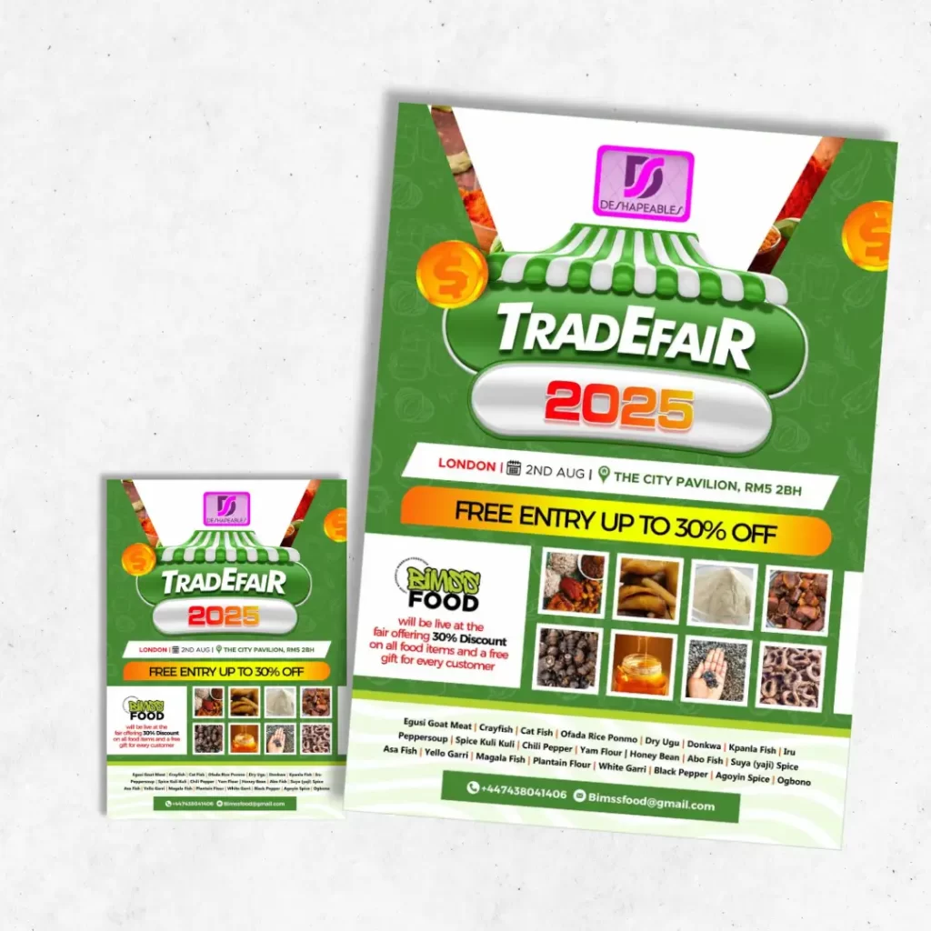When flyers echo food packaging aesthetics, customers feel reassured before purchase.